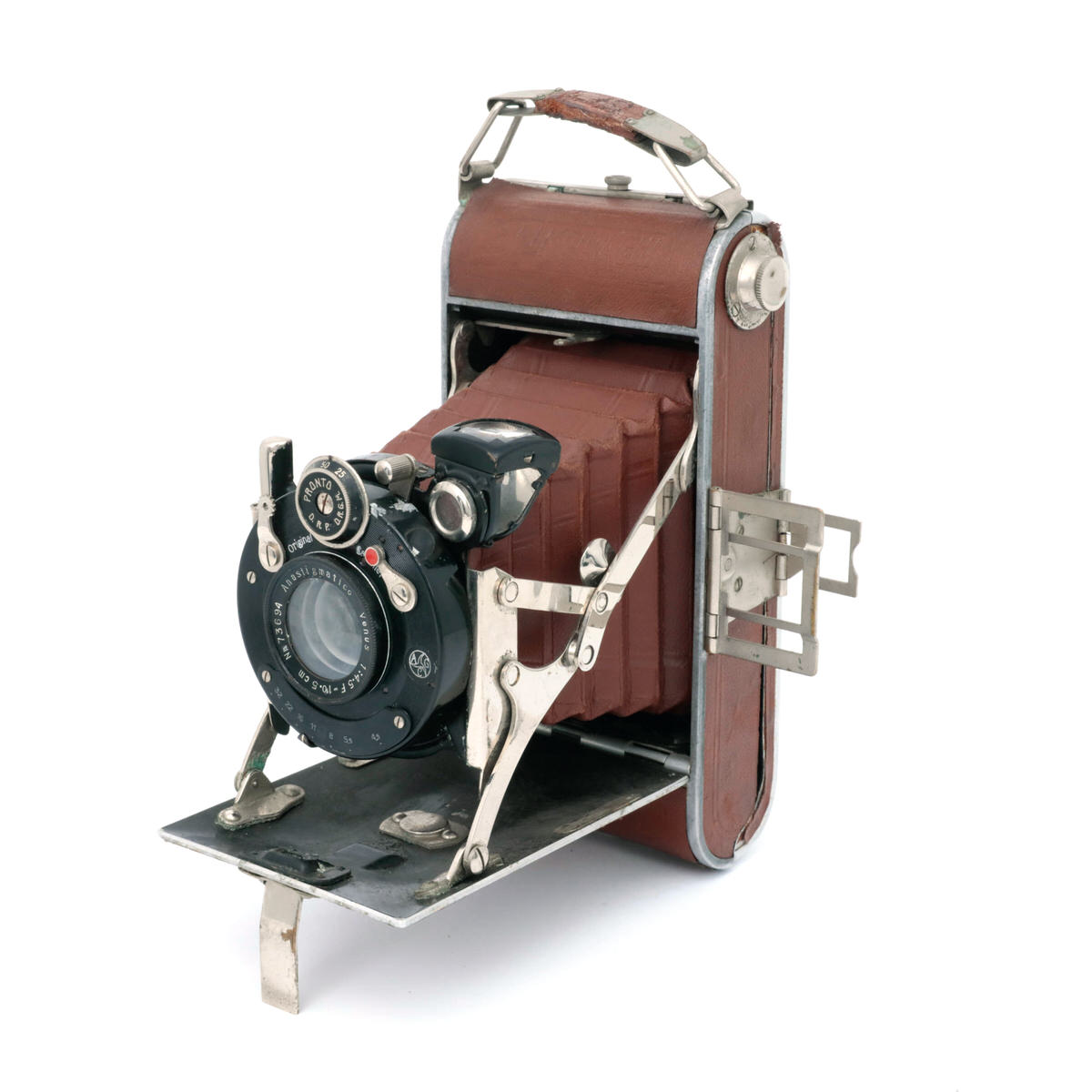 •Otturatore: equipaggiata con un otturatore Pronto, che offre tempi di esposizione da 1/25 a 1/100 di secondo, oltre alle pose T (time) e B (bulb) per esposizioni manuali prolungate.