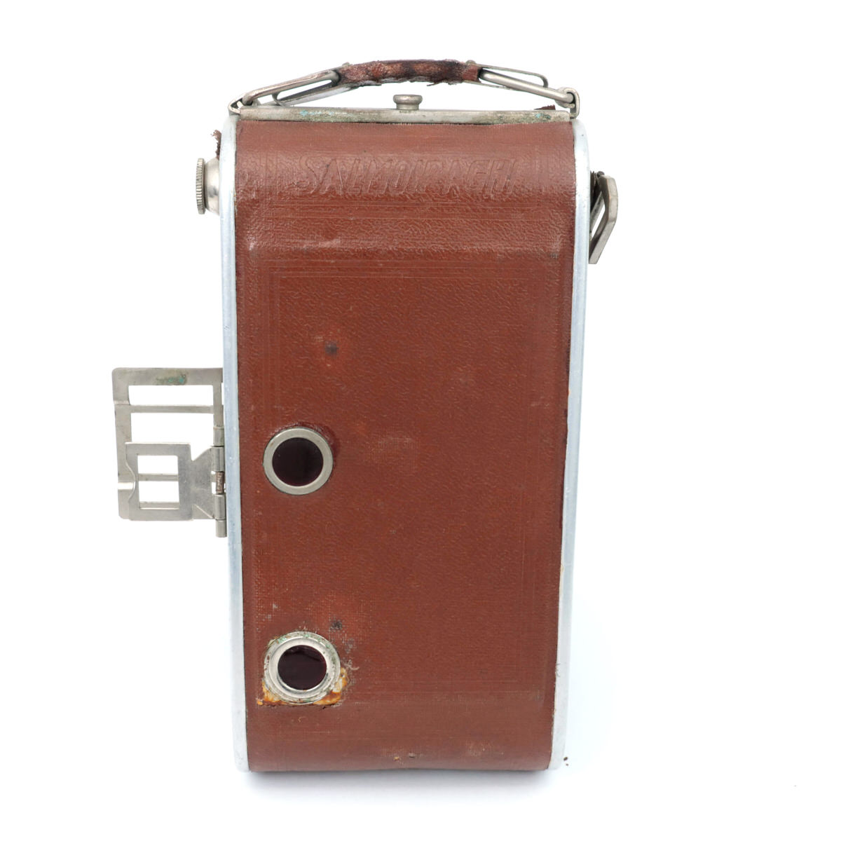 •Rivestimento: soffietto e corpo rivestiti in pelle marrone, tipico dell’epoca e indicativo di una costruzione curata.