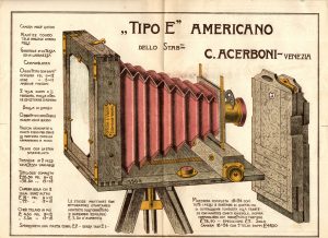 Un esempio della sua produzione è il modello “Tipo E”, una fotocamera a soffietto, progettata per lastre di formato 13×18 cm. Questa macchina fotografica riflette l’eleganza e la qualità tipiche dell’artigianato veneziano dell’epoca.